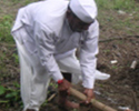August/September 2008: In Bamhani the Work Camp members worked alongside the young men from the Technical School to line the inlet and outlet gulley on the Watershed Project. |