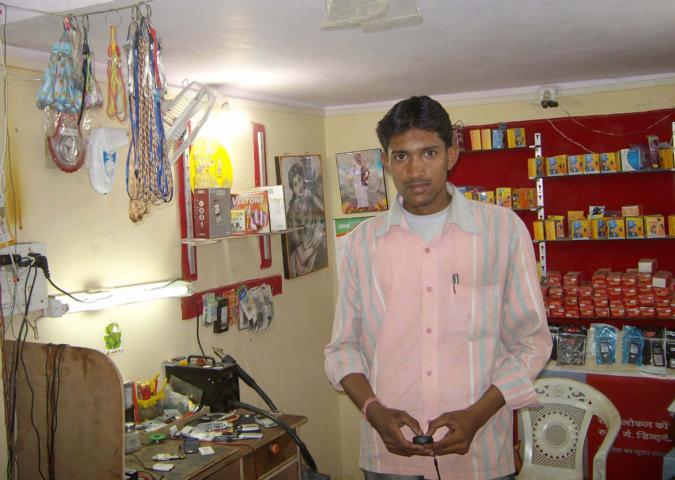 Pankaj Awchat is only 21 years old, and yet he is already running his own mobile shop in Butiburi, a village around 35 km south of Nagpur. His father being an Auto Rickshaw-Driver, Pankaj knew that he would need a good education to make a better living one day. So while going to school he also attended two Technical Training Courses in Butiburi and Nagpur. Finally, after finishing 12 th grade he decided to take part in the Ecumenical Sangam's 6-months Electrical Wiring and Motor Re-winding Training Course. The training included boarding in the Bamhani Base Centre. Pankaj especially enjoyed the community and team-work experience besides the technical training. At the end of the Training Course, with the Government Certificate in his hands, he prepared to open his own mobile shop with the help of a loan from family and friends. Offering electrical rewinding of mobiles and selling mobile hardware the young entrepreneur is now earning up to 4000 Rupees (£54). per month, which is quite a lot compared to the monthly wage of 2500 Rupees (£33) for a low-skilled factory worker. The business is running well, so Pankaj has good prospects of earning even more in the future.